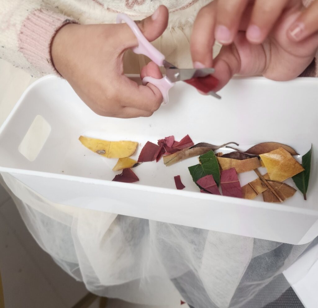 Cutting with scissors is an essential early learning skill. This leaf cutting activity helps preschoolers:Strengthen hand muscles and fine motor coordination, Practice scissor safety and control, Improve focus and concentration. Explore textures, shapes, and colors found in nature. Plus, it’s a wonderful sensory experience — the sound, feel, and smell of real leaves make learning even more exciting!