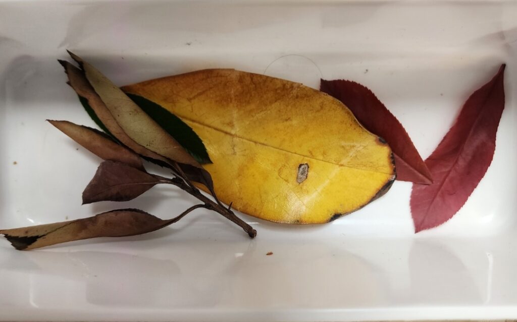 A variety of fresh or dried leaves (different sizes and shapes)Child-safe scissorsA tray or basket for collecting leavesOptional: paper, glue, and crayons for making leaf art afterward.