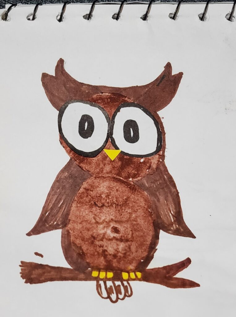 - Use paintbrushes or markers to draw feathers, talons, or even a branch under the owl.
