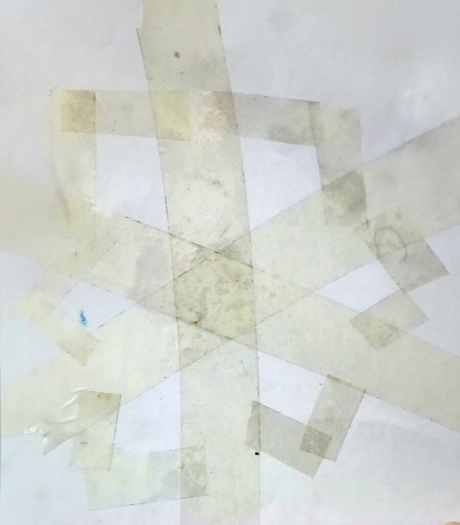 Place a sheet of white cardstock on a flat surface. - Make the Snowflake with Tape