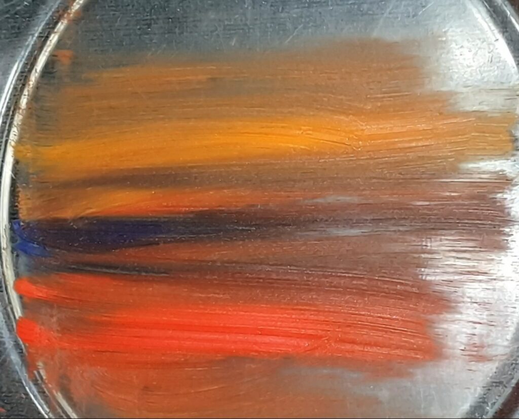 Take a painting plate. Add drops of paint. Help them spread a thin layer of acrylic paint using a brush or fingers. You can use one color or swirl several together for a tie-dye look.