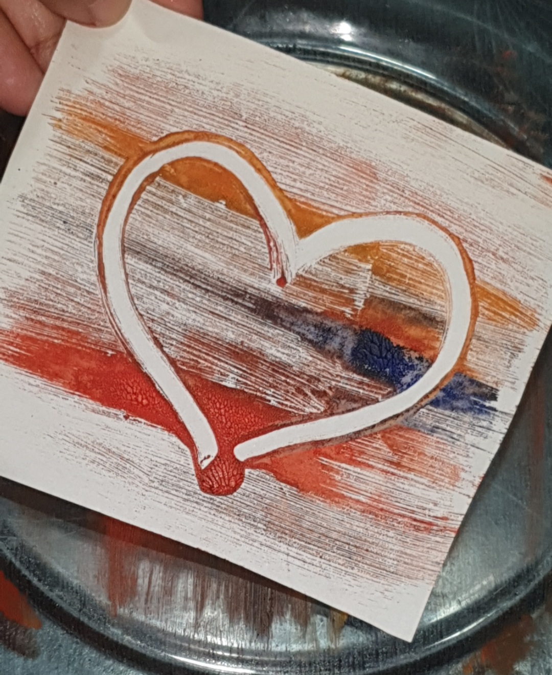 Place a sheet of paper over the paint and press down evenly. Use a brayer or hands to smooth it out.