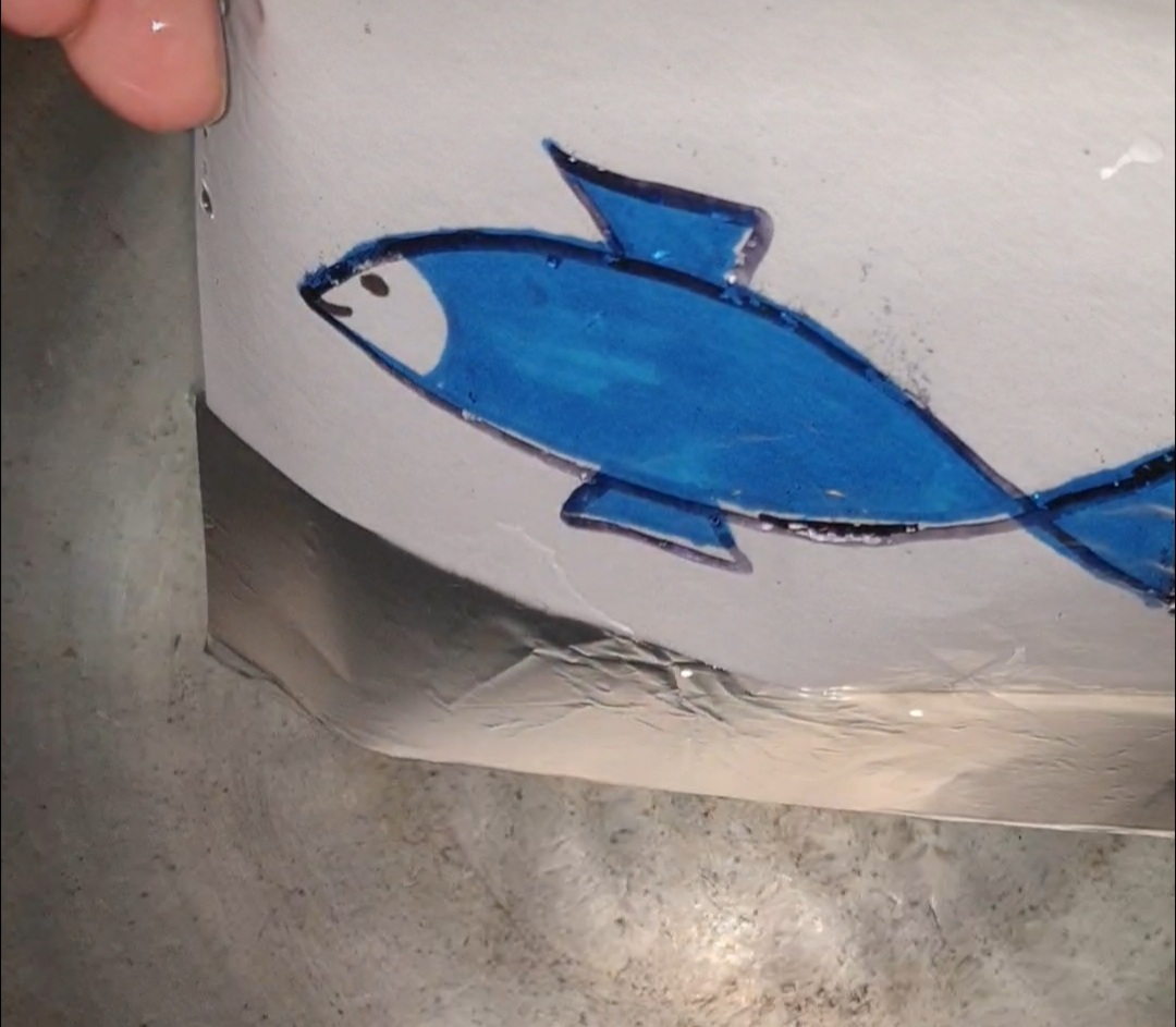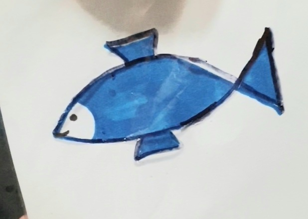 On the piece of paper, draw a colored fish using a dark marker. The bolder and darker, the better!